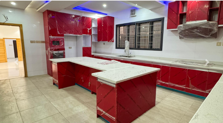 Ante room • All rooms ensuite • High end ceiling • Chandeliers • Inbuilt speaker • Microwave • Oven • Heat extractor • Table top cooker • Marble island • Kitchen cabinets • Pantry • Family lounge • Laundry room • CCTV camera • Cinema • BQ • study room • Spot light • POP ceiling • Walk-in closet • Control room • Wardrobe • Kitchenette • Shower cubicle • Bath tub • Walkin shower • Rooftop terrace • Swimming pool • Gym house • Security house